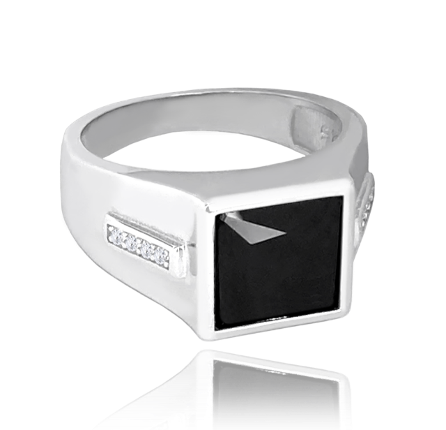 MINET Pánský pečetní stříbrný prsten s černým zirkonem vel. 62