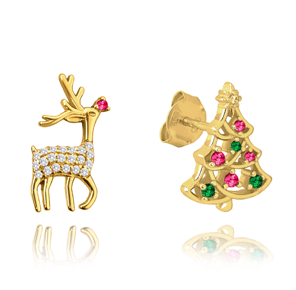 MINET Vánoční pozlacené stříbrné náušnice SOB a STROMEČEK