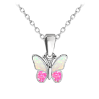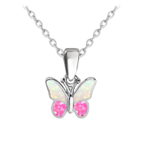 MINET Třpytivý dětský stříbrný náhrdelník MOTÝLEK s růžovým opálem