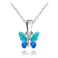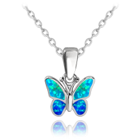 MINET Třpytivý dětský stříbrný náhrdelník MOTÝLEK s modrým opálem