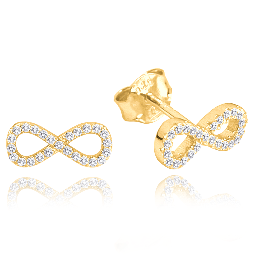 MINET Pozlacené stříbrné náušnice NEKONEČNO s bílými zirkony