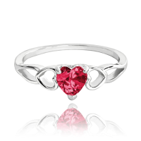 MINET Stříbrný prsten LOVE s červeným srdíčkovým zirkonem vel. 59