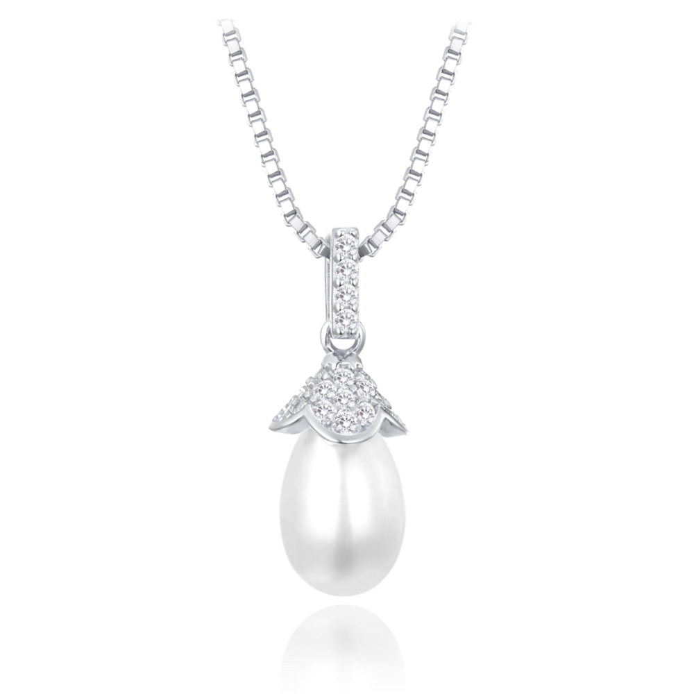 MINET Stříbrný náhrdelník s přírodními perlami a zirkonem