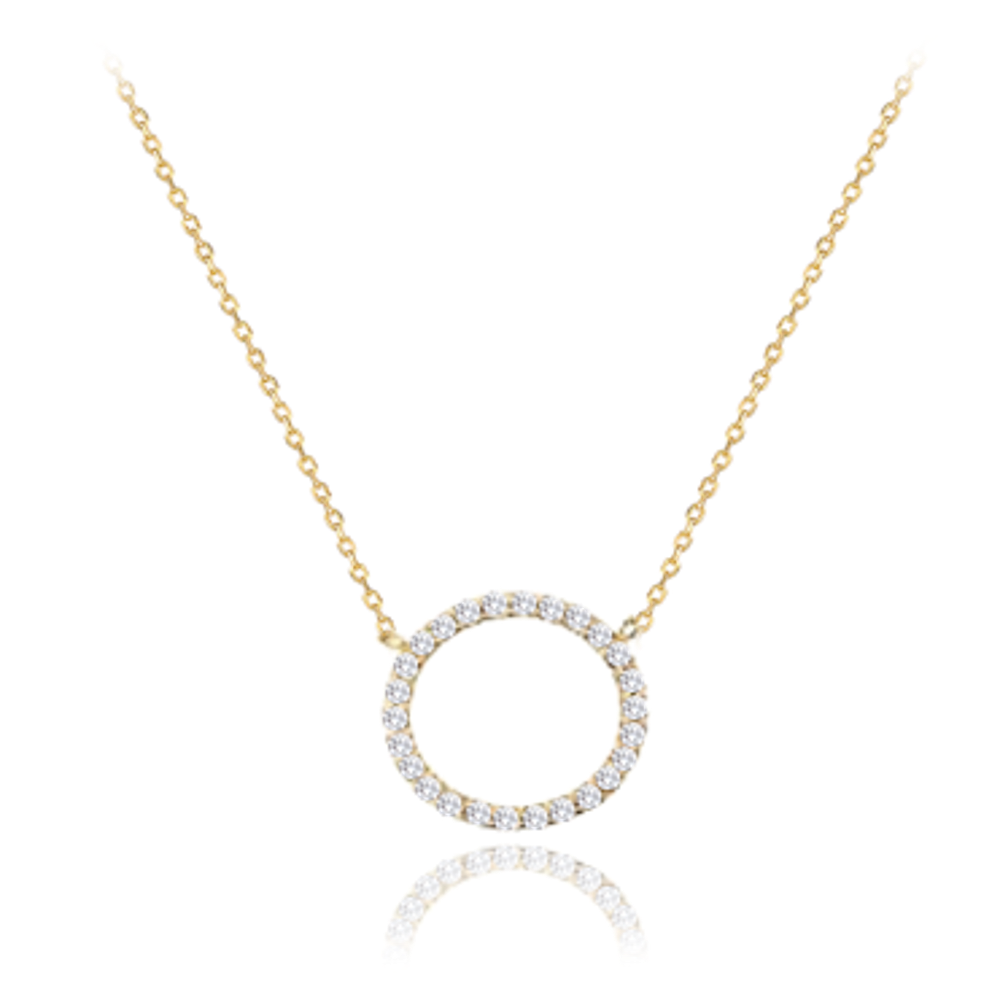 MINET Zlatý náhrdelník kroužek s bílými zirkony Au 585/1000 2,05g
