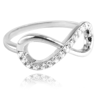 Stříbrný prsten MINET se symbolem nekonečna je odrazem současných trendů. Zajímavě posazené kamínky z něj udělají originální doplněk pro každodenní nošení.