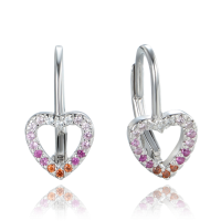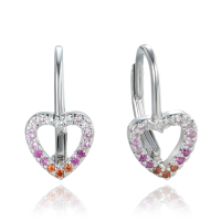 MINET Stříbrné náušnice srdce se zirkony v červených odstínech
