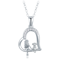 MINET Stříbrný náhrdelník dívka se psem a bílými zirkony