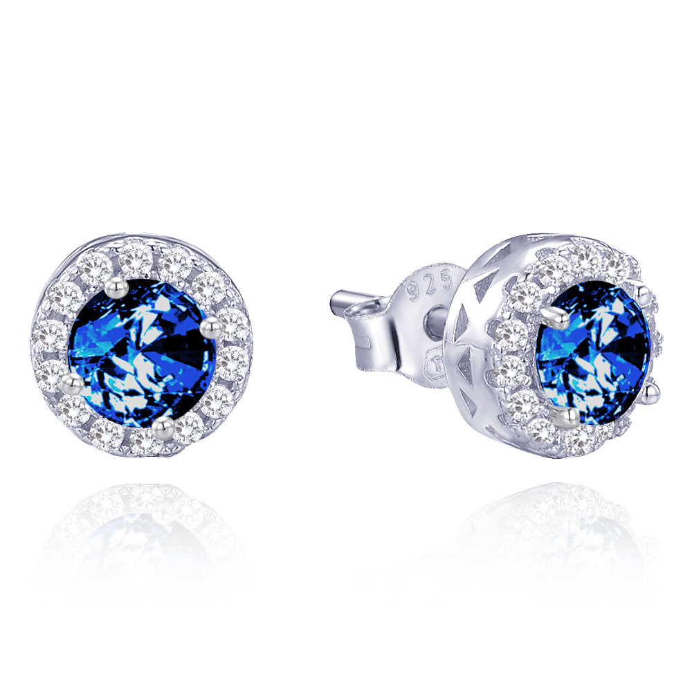 MINET Elegantní stříbrné náušnice s bílými a modrými zirkony