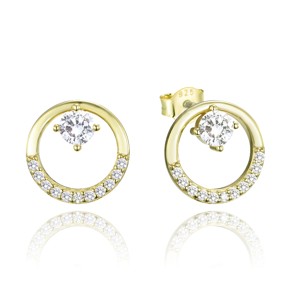 MINET Luxusní pozlacené stříbrné náušnice s bílými zirkony