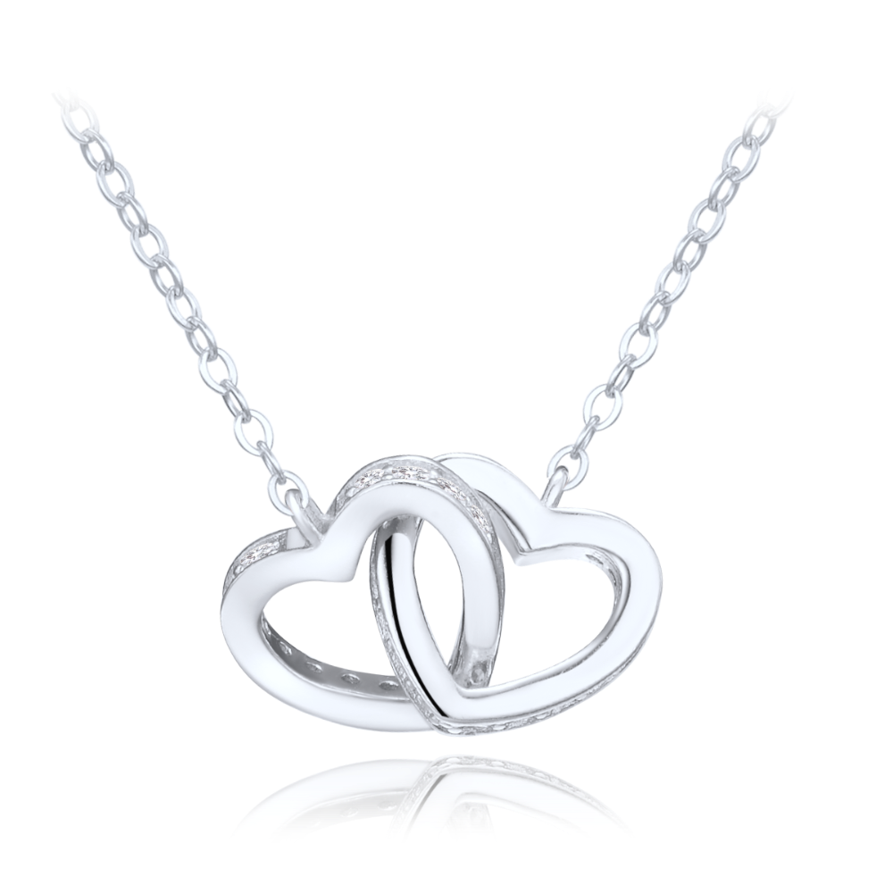 MINET Stříbrný náhrdelník spojená srdíčka s bílými zirkony