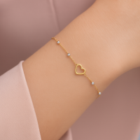 MINET Zlatý náramek srdíčko a kuličky v kombinaci bílého a žlutého zlata Au 585/1000 1,05g