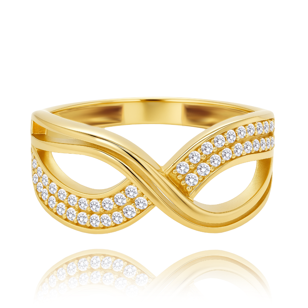 Moderní prsten z pravého 14karátového zlata s bílými zirkony. Prsten je vhodný pro každodenní nošení i zvláštní příležitosti. Kvalitního zpracování si všimnete hned po prvním nošení.