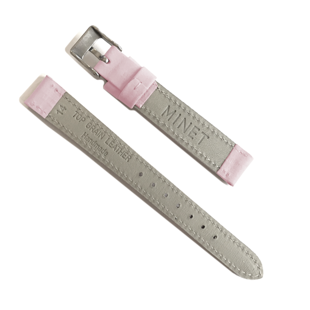 Nubuk, neboli jemná kartáčovaná kůže, připomíná na dotek semiš a přirozeně tak dotváří něžný vzhled dámských hodinek. Navíc, španělská kůže "Top Grain", ze které je tento řemínek MINET vyroben, bývá označována za tu nejkvalitnější kůži na světě.